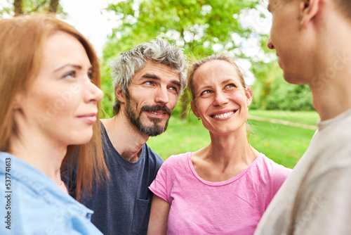 Junge Leute stehen im Kreis im Teambuilding Workshop