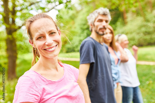 Junge Leute stehen im Kreis im Teambuilding Workshop