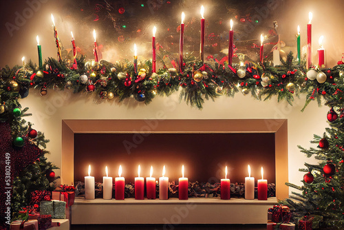 Festive Christmas Ornaments With Gold Star Silver Baubles Pine Branches And Bokeh Lights For Holiday Season And Celebrations