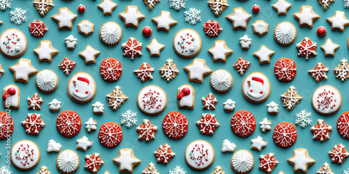 Red and white christmas cookies with icing as seamless pattern background illustration