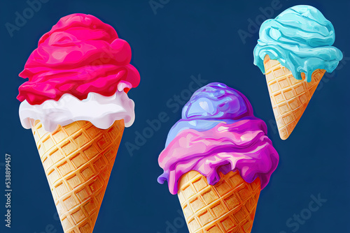 Hoovering scoops of ice cream in ice cream cones (Generative AI)