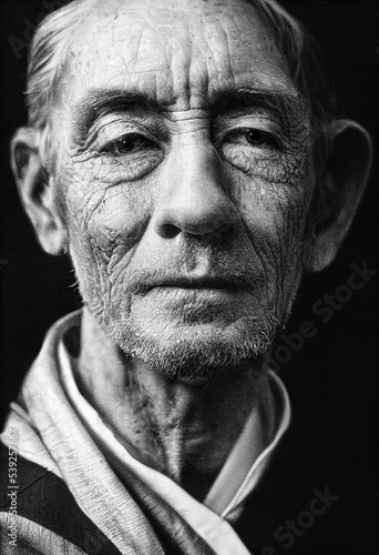 Illustration of fictional male monk as wisdom and asceticism concept (Generative AI)