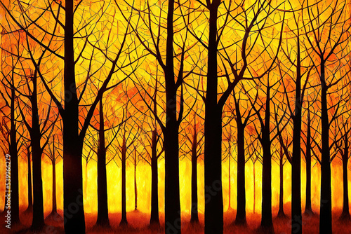 Gruseliger dunkler Horror Wald mit kahlen Bäumen