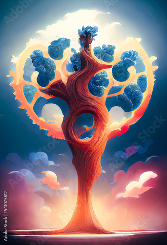 Religious tree of life as cartoon illustration
