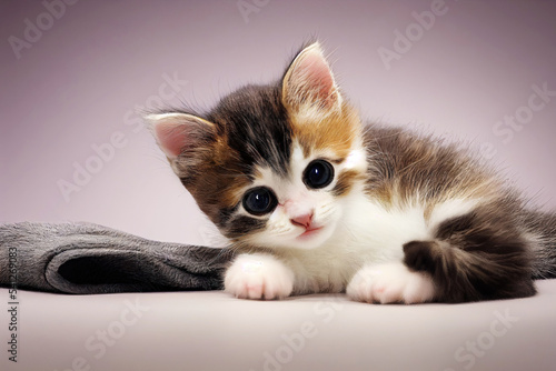 Cute hand-drawn kitten sticker with big eyes hugging a yarn ball