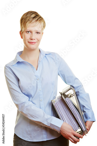 Frau mit Akten im Schulungsraum zur Weiterbildung