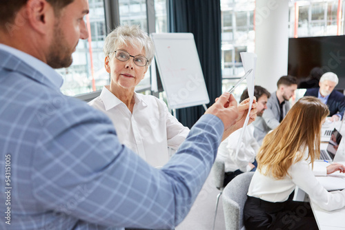 Pfeil vor Mitarbeiter Portraits als Unternehmenswachstum Konzept