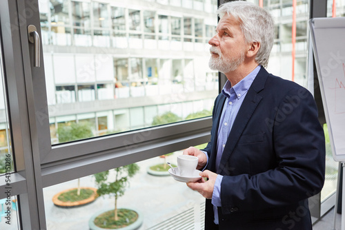 Young businessman drinks a cup of coffee