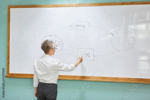 Young scientist as a lecturer at the whiteboard