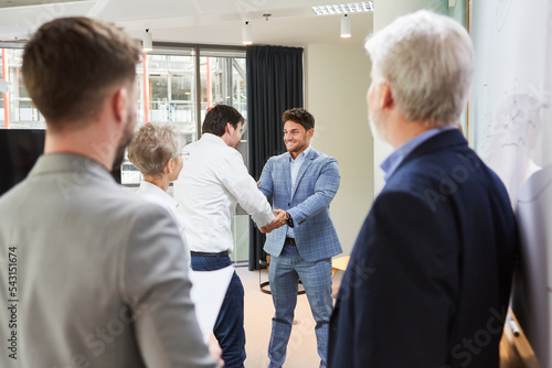 Business Mann und Trainee beim shakehands