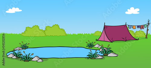 Teich oder Tümpel auf grüner Wiese im Sommer