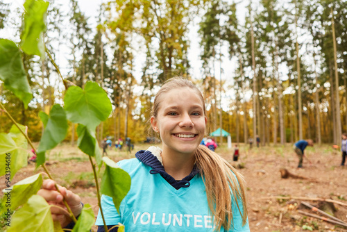 Glückliches Mädchen als freiwillige Helferin bei Aufforstung