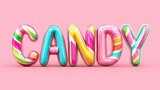 Colorful glossy candy letters on pink background for a playful, bright stock image design