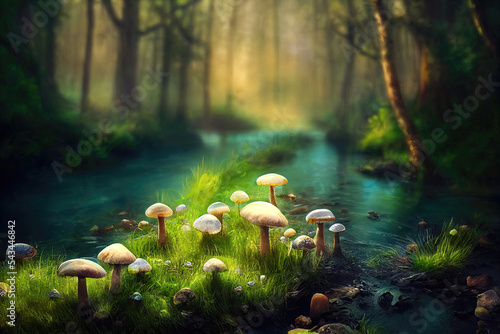 Magical rainbow in fairy tale forest as fantasy wallpaper