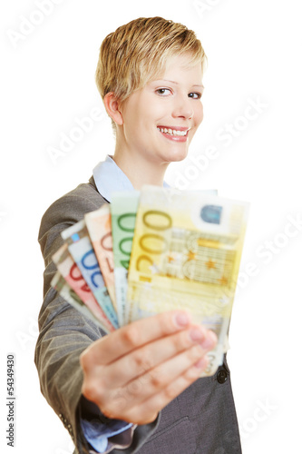 Geschäftsfrau hält Fächer aus Euro-Geldscheinen
