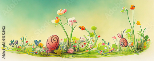 Colorful summer meadow with many different flowers blooming (Generative AI)