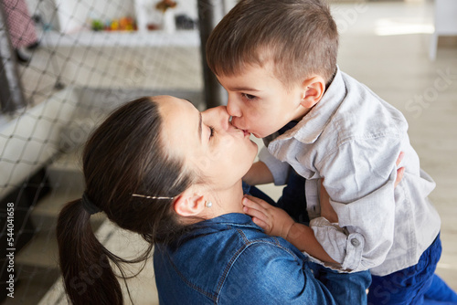 Mutter gibt ihrem Sohn einen liebevollen Kuss