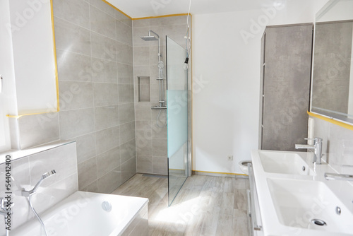 Luxury bathroom with bathtub and shower as interior design