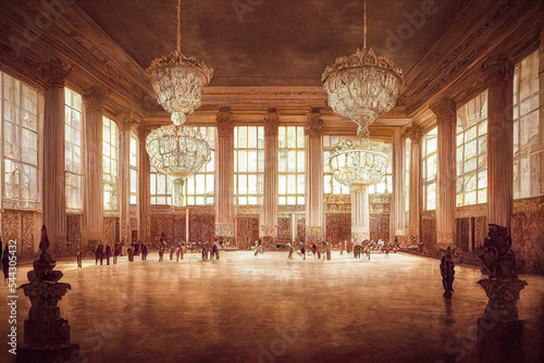 Big classical ballroom as digital interior design illustration (Generative AI)