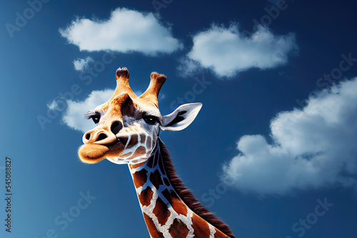 Cute portrait of giraffe in studio setting as wildlife illustration