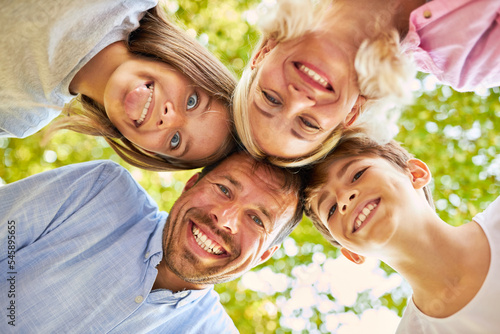 Kinder zeigen die Zunge und Eltern lachen dazu