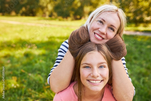 Mother fools around with her daughter's hair