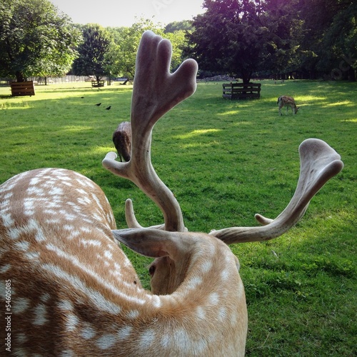 Cute cartoon deer in a children's illustration with playful innocence, inspired by whimsical art styles.