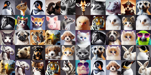 Farm animal studio portrait collage (Generative AI)