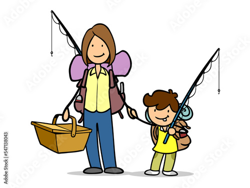 Alleinerziehende Mutter und Sohn und Fische beim Angeln