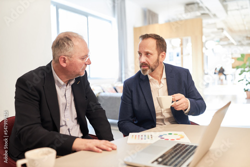 Zwei Geschäftsleute als Kollegen im lockeren Gespräch
