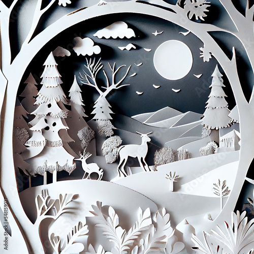 Winter Holiday Scene With Houses Trees Snow And Christmas Ornaments In Paper Cut Design For Festive Season And Celebrations