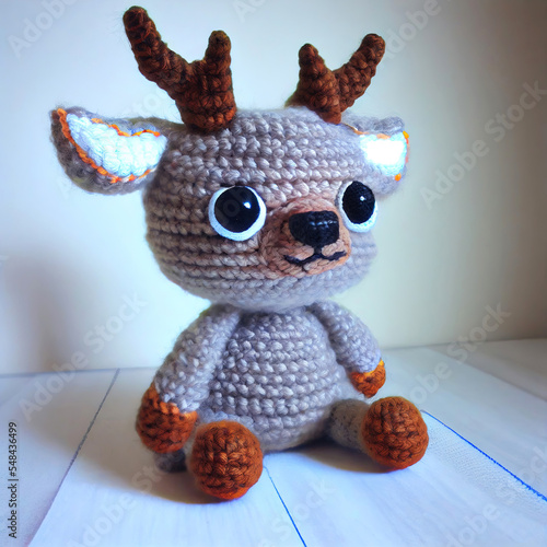 Cute handmade crotcheted reindeer plush toy as christmas present illustration