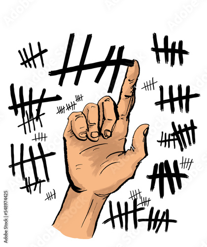Hand führt Strichliste als Abwarten und Zählen Konzept