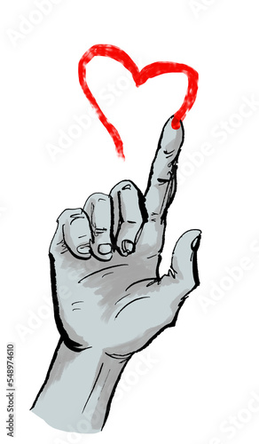 Hand malt rotes Herz in die Luft als Valentinstag Gruß