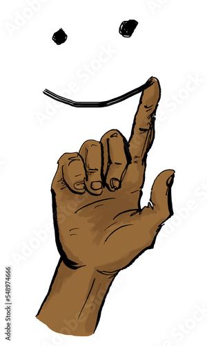 Hand malt Smiley in die Luft als Freude Konzept