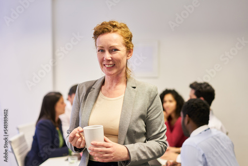 Glückliche Geschäftsfrau mit Smartphone freut sich