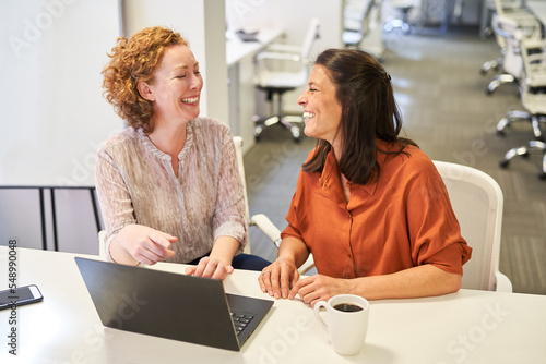 Zwei Business Frauen arbeiten gemeinsam am Laptop Computer