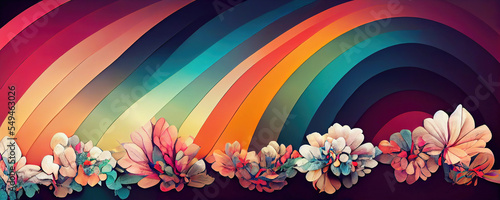 Modern abstract rainbow color with flowers wallpaper