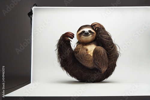Charming sloth floating gracefully in the sky against a clean white background, exuding a sense of calm and whimsy
