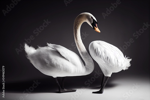 Portrait of deformed ostrich bird with two beaks and two sets of eyes as side effect of digital engineering (Generative AI)