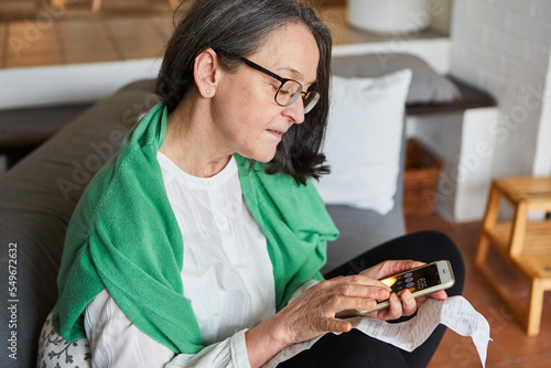 Ältere Frau mit Taschenrechner für Sparsamkeit