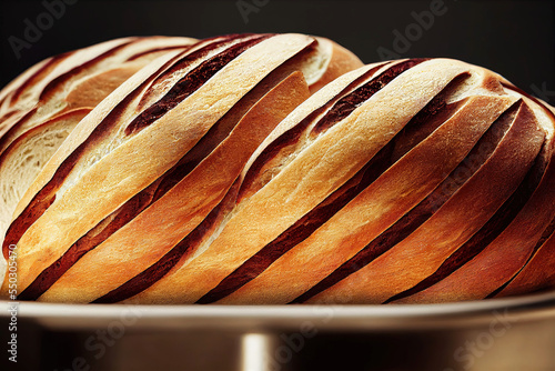 Artisan bread and fresh milk in rustic setting with warm golden tones