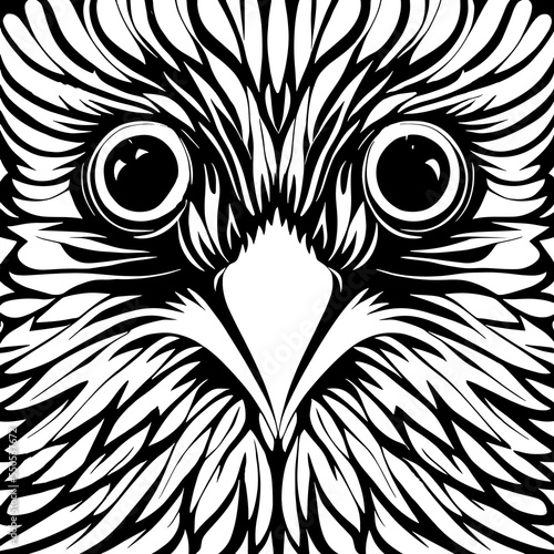 Closeup flat black and white portrait of bald eagle