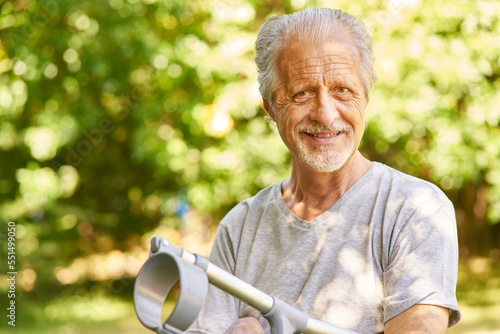 Laughing geriatric nurse sits at the bed of an elderly woman