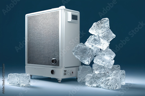 Ice cubes next to radiator as energy saving concept in winter (Generative AI)