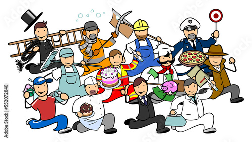 Gruppe Leute mit verschiedenen Berufen hält Schild
