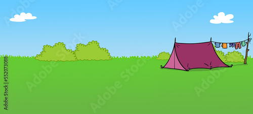 Cartoon Kuppelzelt auf Wiese vom Campingplatz
