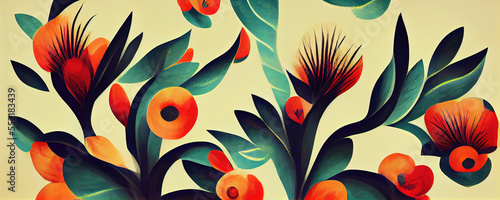 Abstract colorful jungle flower background wallpaper design (Generative AI)