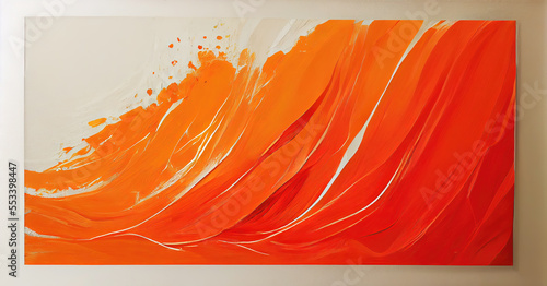 Abstract modern art with orange paint strokes on canvas (Generative AI)