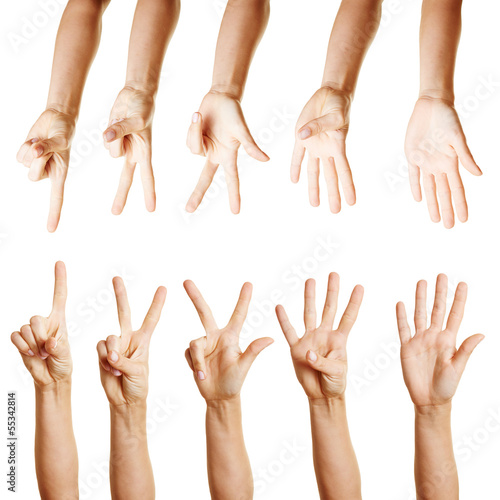 Viele Hände zählen von eins bis fünf